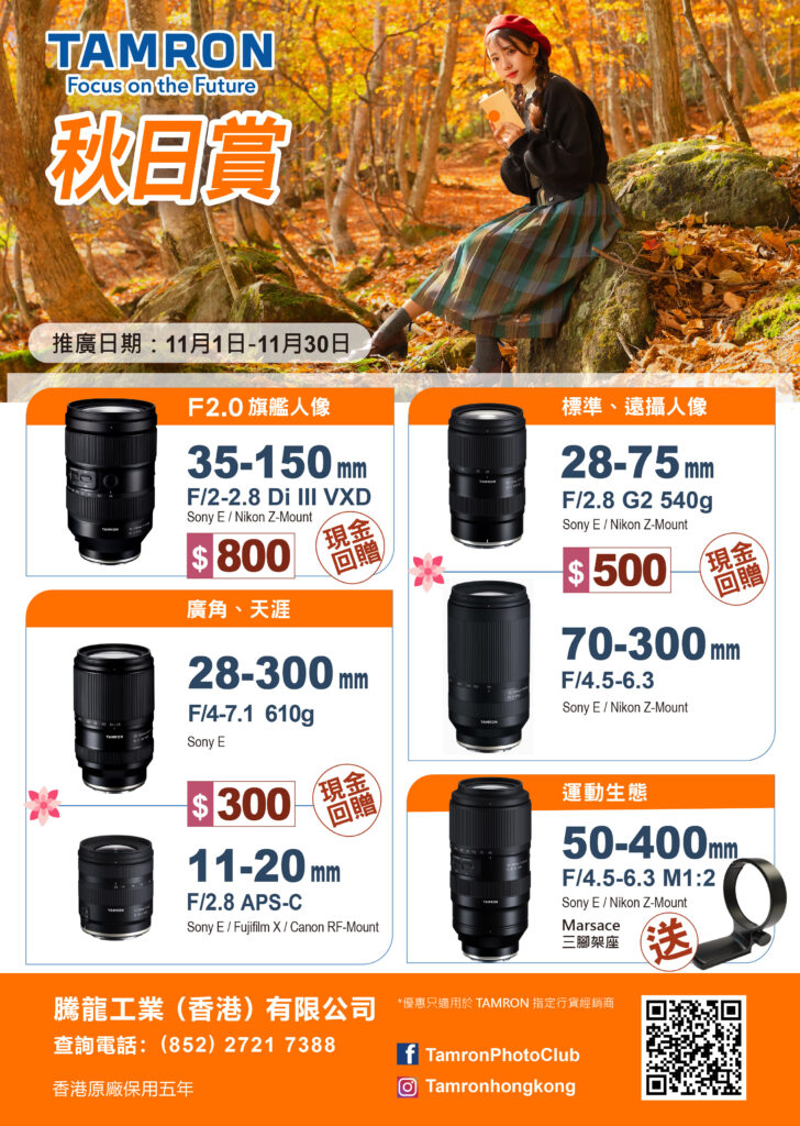 ★優惠期只限2025年11月1日至11月30日期間購買的鏡頭