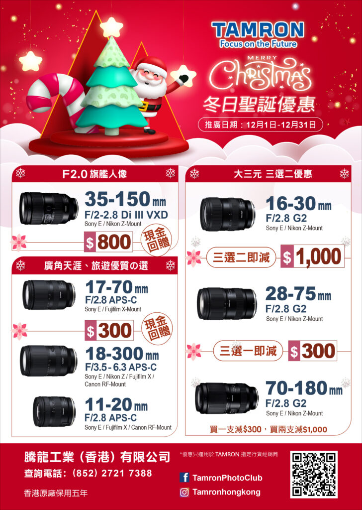★優惠期只限2025年12月1日至12月31日期間購買的鏡頭